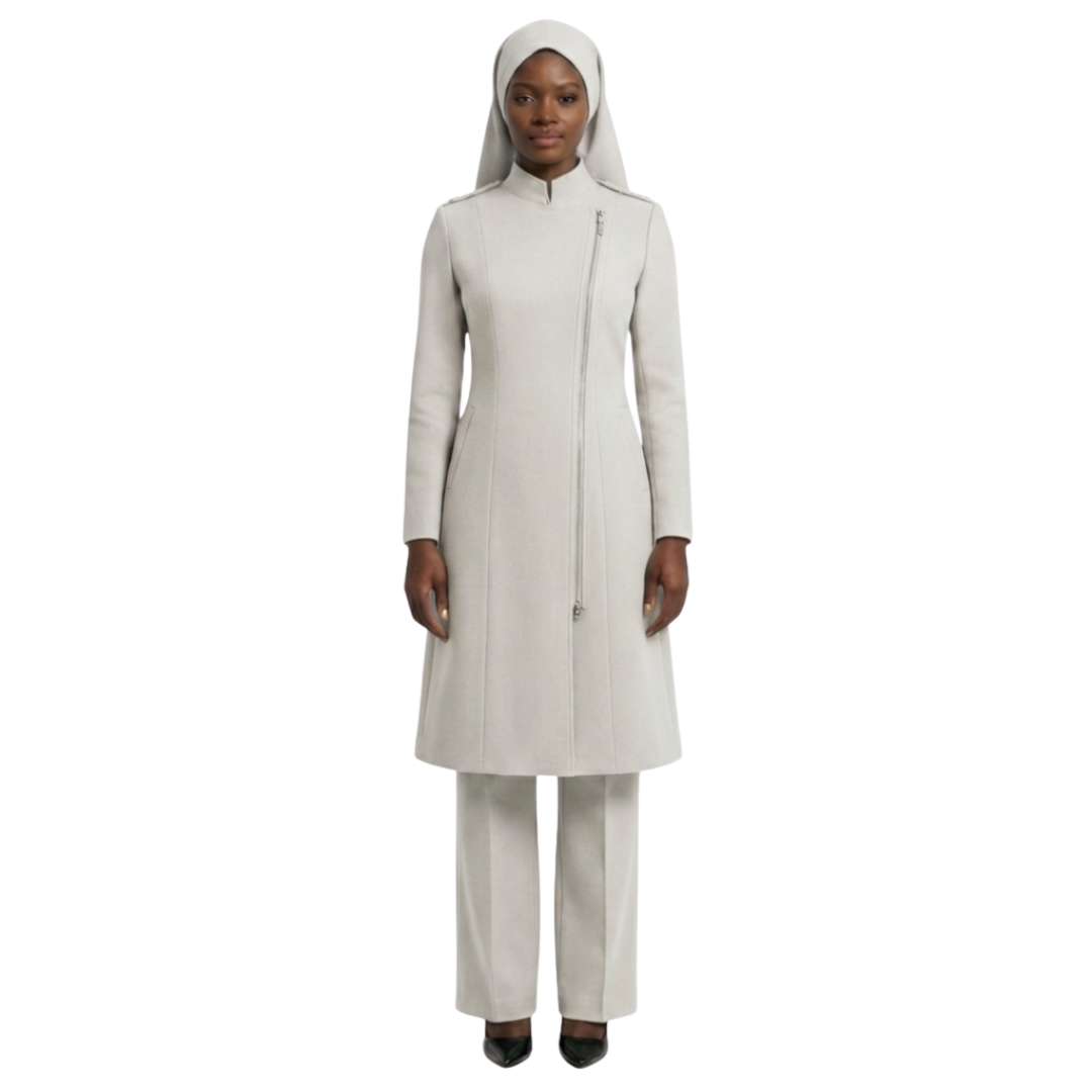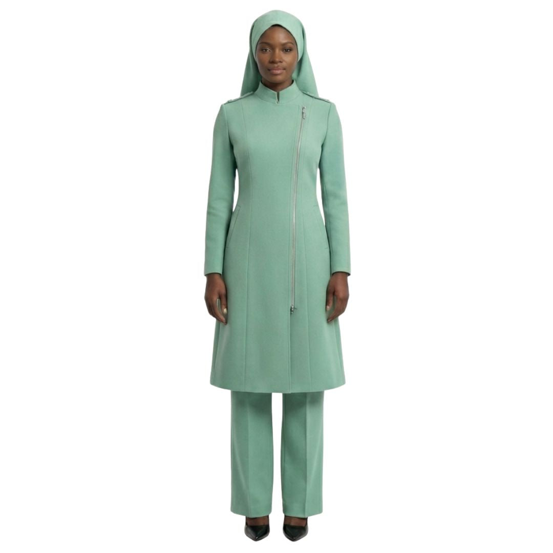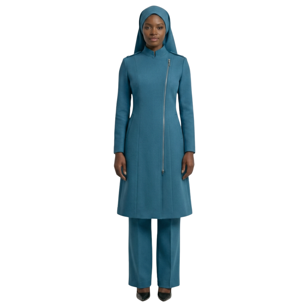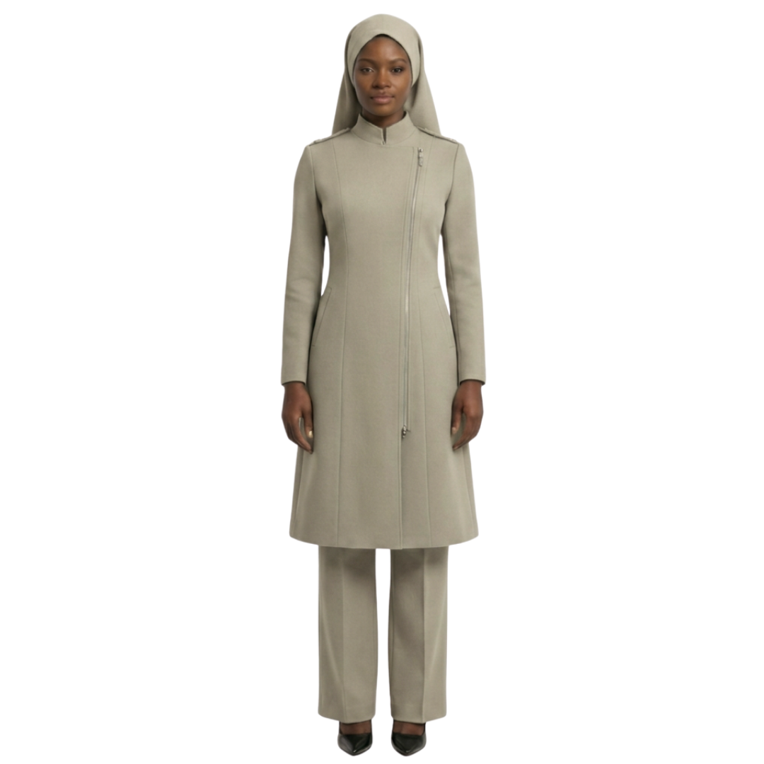 One of the standout features of the Aneesah design is its full-length zipper in the front. This functional detail makes the garment easy to put on and take off, offering unparalleled convenience for women who are always on the go. Whether you need a quick outfit adjustment or are layering it over other garments, the zipper ensures ease without compromising style. This thoughtful detail aligns perfectly with the principles of modest clothing, providing full coverage while remaining practical.