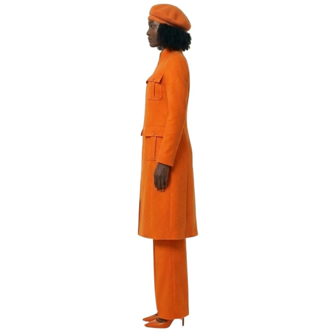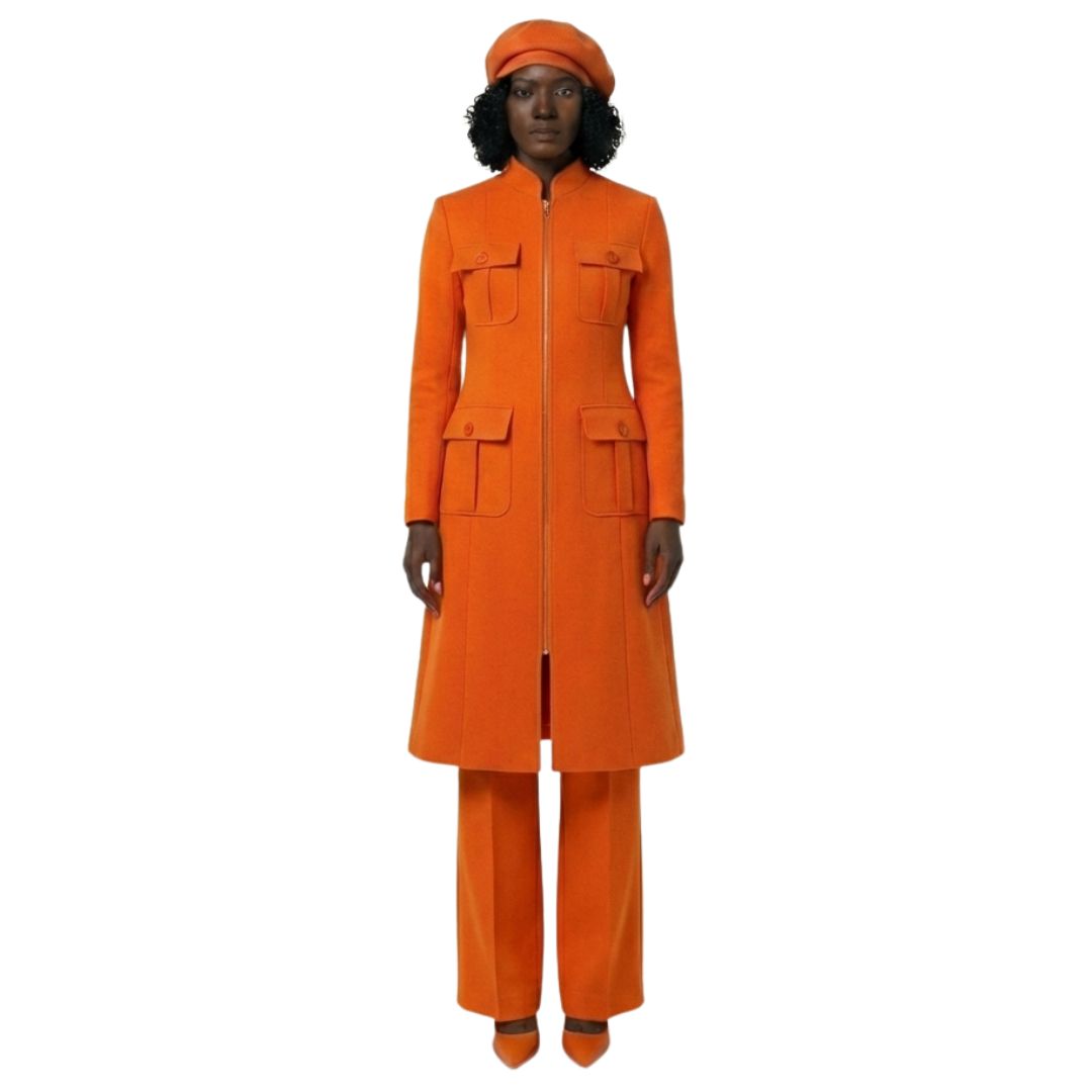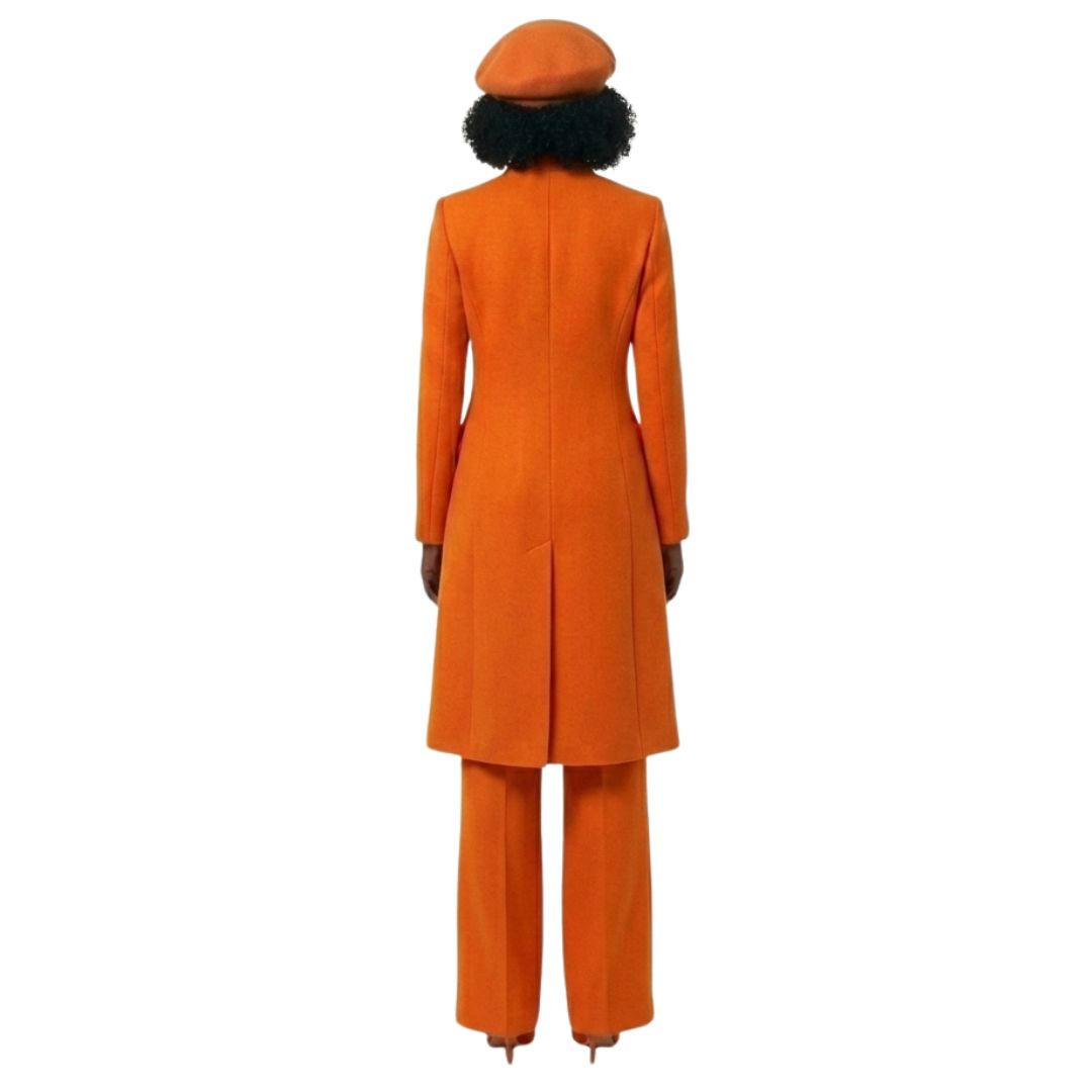 The Avid dress features a refined single button at the collar, providing a polished and graceful touch. The princess seams are thoughtfully designed to create a flared silhouette at the bottom, offering both movement and volume. These design elements ensure the garment is not only comfortable but also visually striking, creating a timeless look.