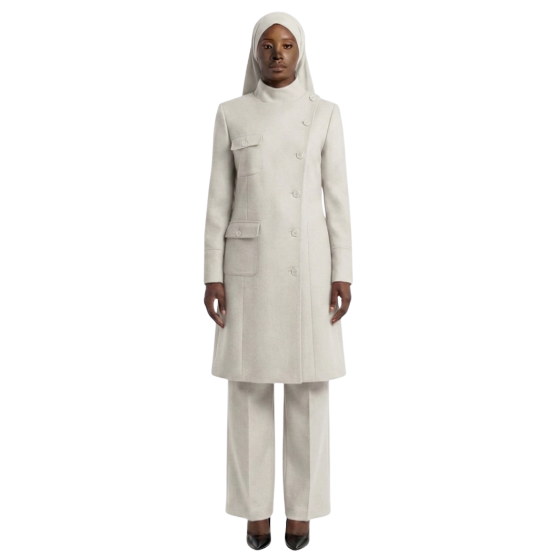 Introducing Chandra, our latest ensemble—a stunning representation of elegance and functionality designed specifically for the modern Muslim woman. This custom creation is more than just clothing—it’s a statement of empowerment, faith, and style. Whether you’re attending a Nation of Islam (NOI) event, a family gathering, or simply elevating your everyday wardrobe, this piece offers the perfect combination of modesty and flair.