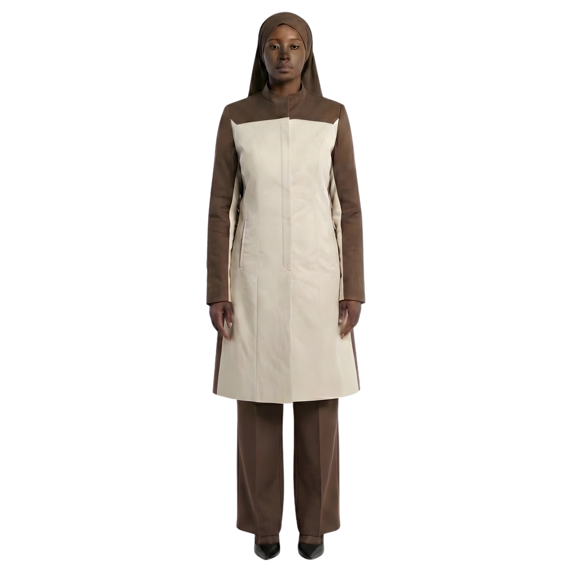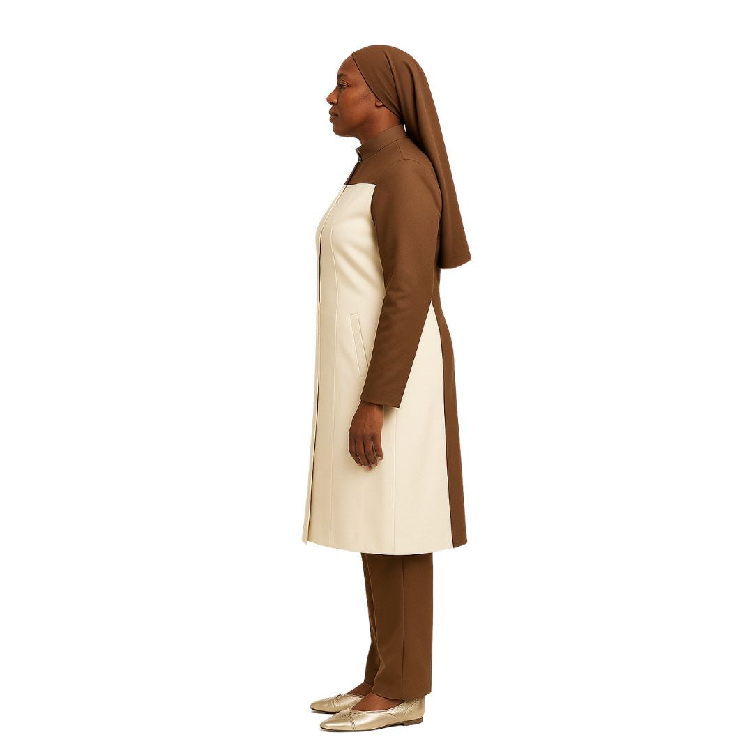 The design features a horizontal line across the chest, offering a modern twist to a traditional modest look. The two-tone design option provides the freedom to experiment with color combinations, allowing you to tailor the garment to your personal style. If you prefer a classic, subtle appearance, the solid color version of "Qiana" remains equally stunning. This balance of contemporary and classic design makes "Qiana" a timeless addition to any wardrobe.