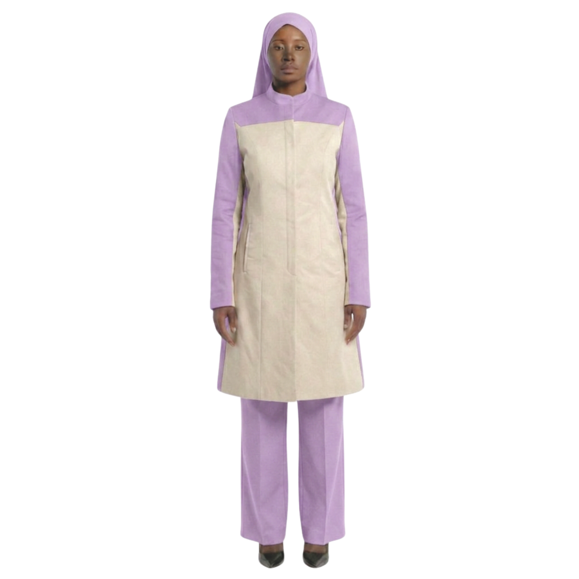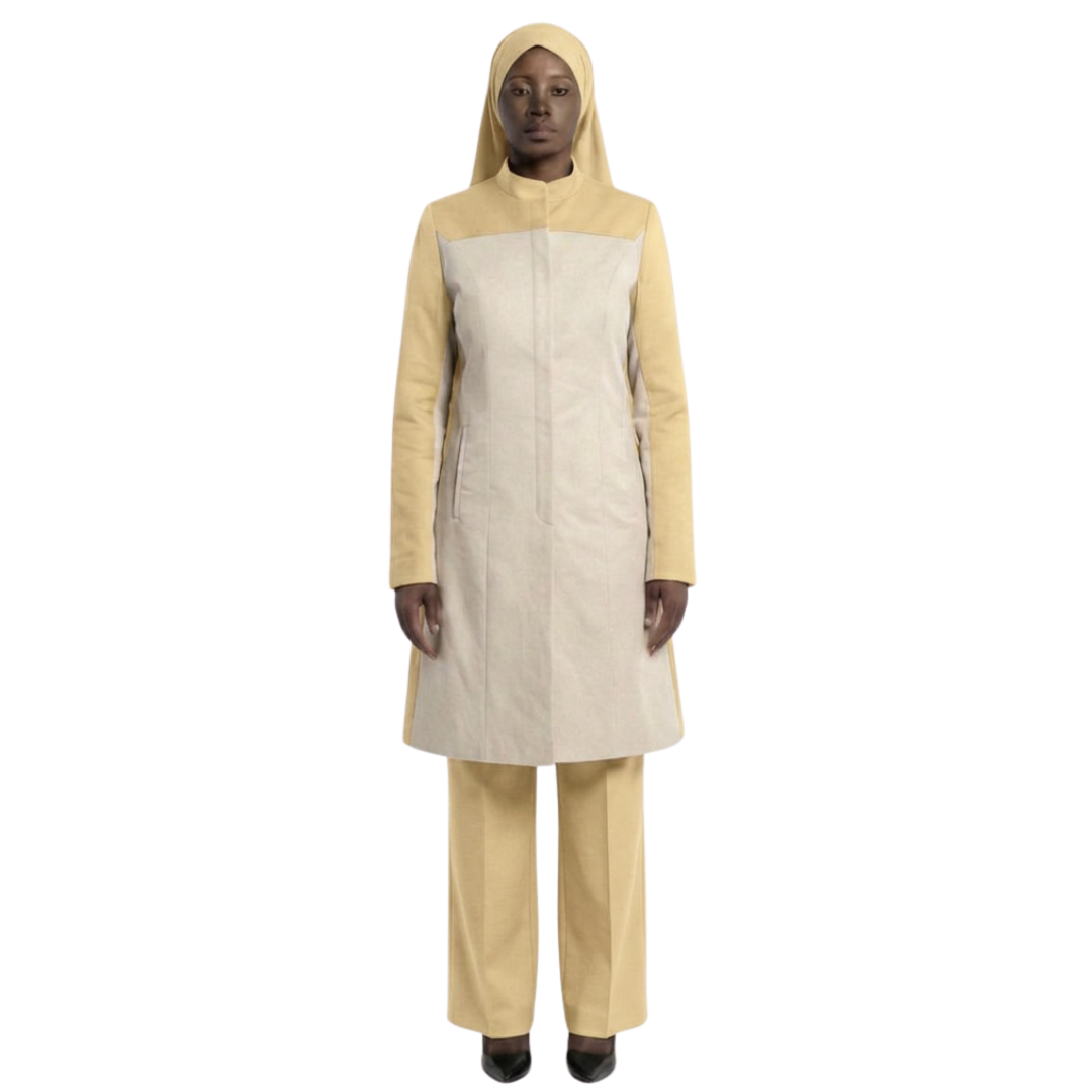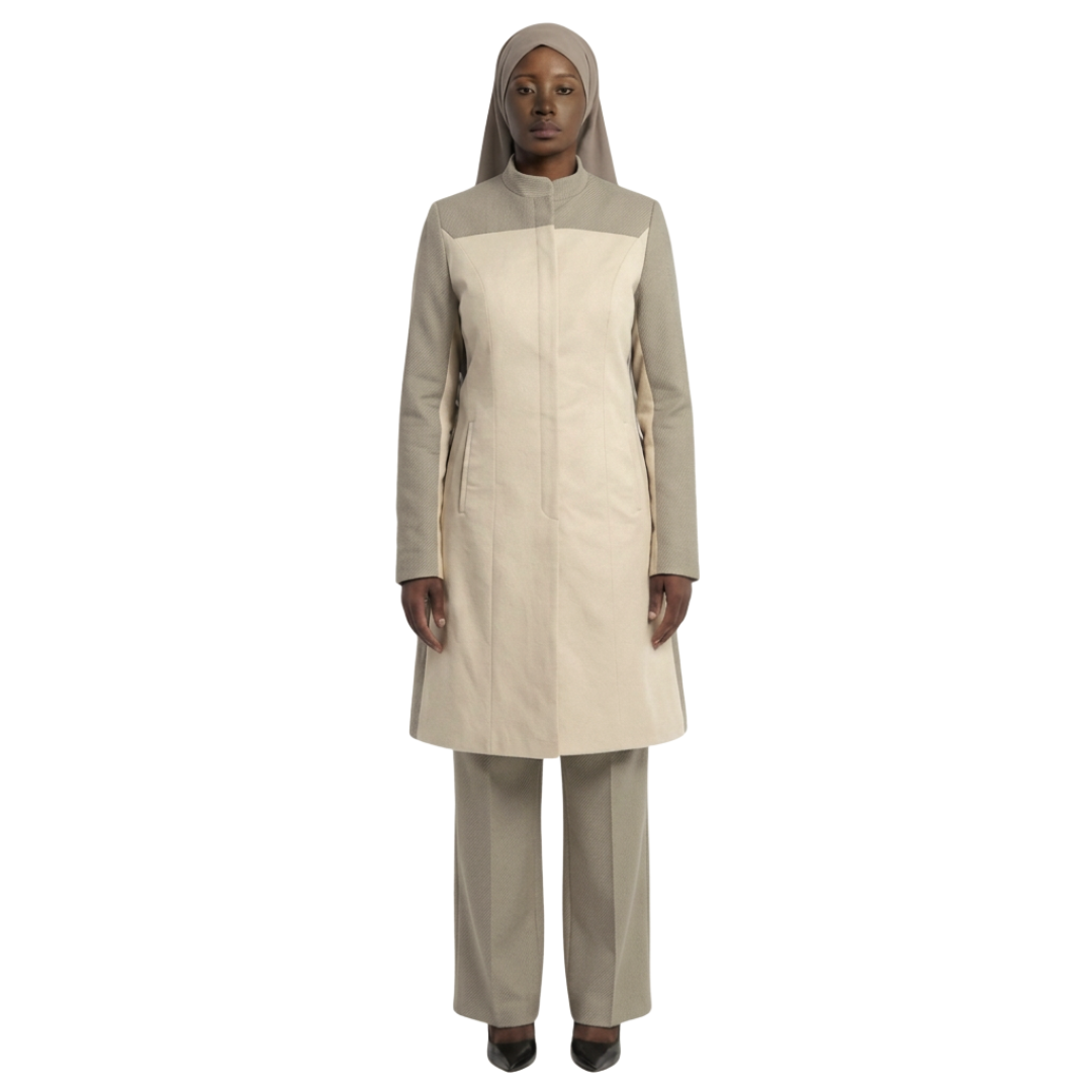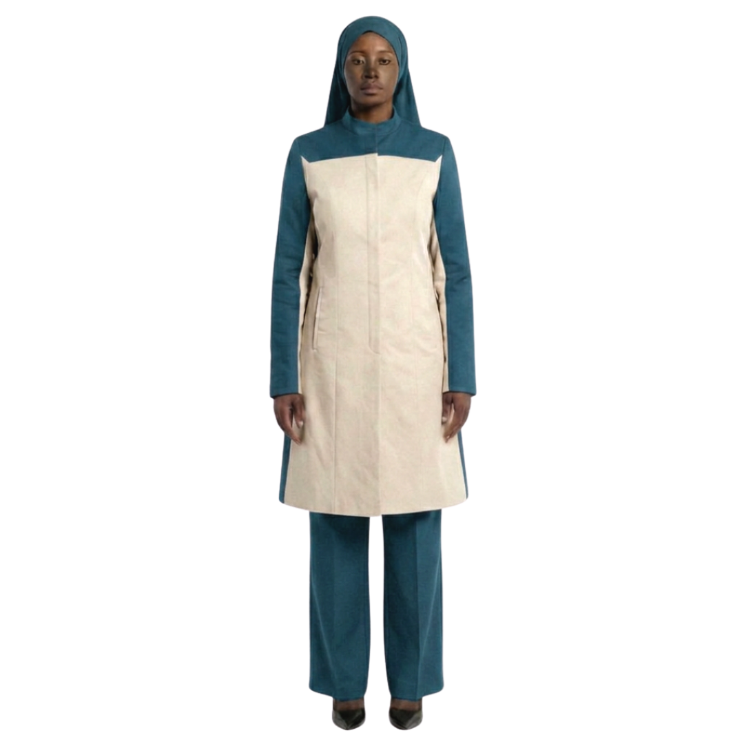 The "Qiana" is the perfect blend of elegance, style, and modesty. This stylish, modest garment features a sleek horizontal line across the upper chest, adding a unique touch of sophistication. Whether you choose a classic single color or embrace the versatility of a two-tone design, "Qiana" allows you to express your individuality while maintaining a modest and graceful look.