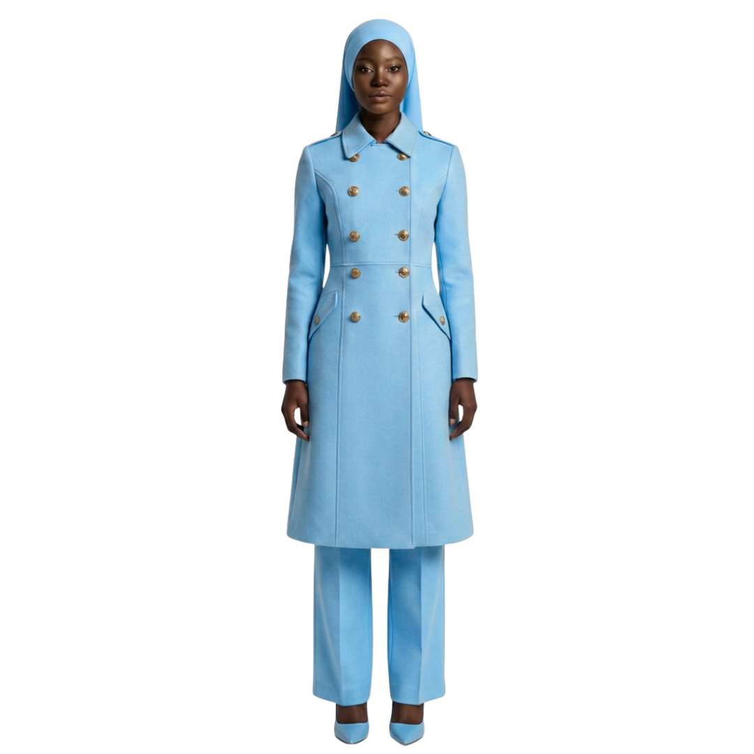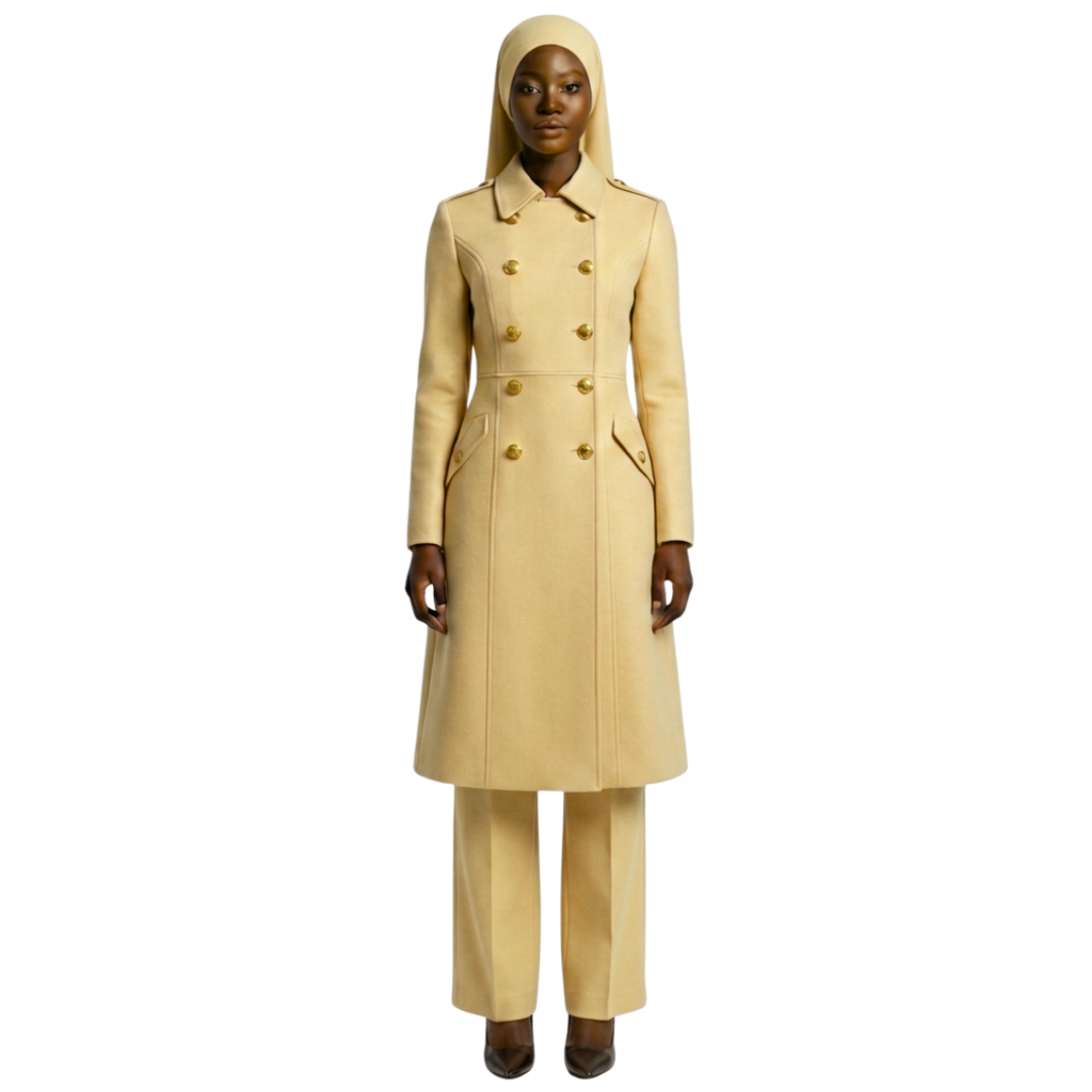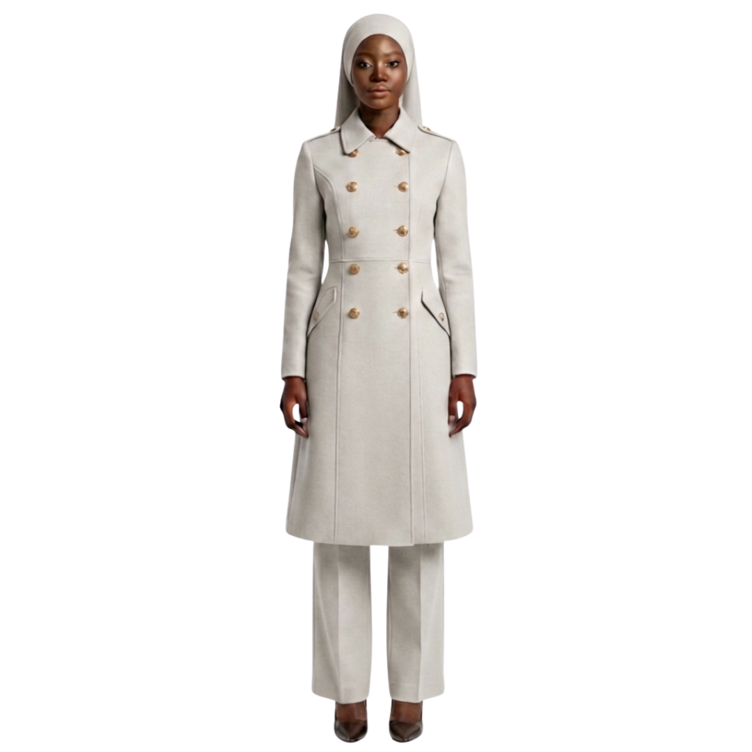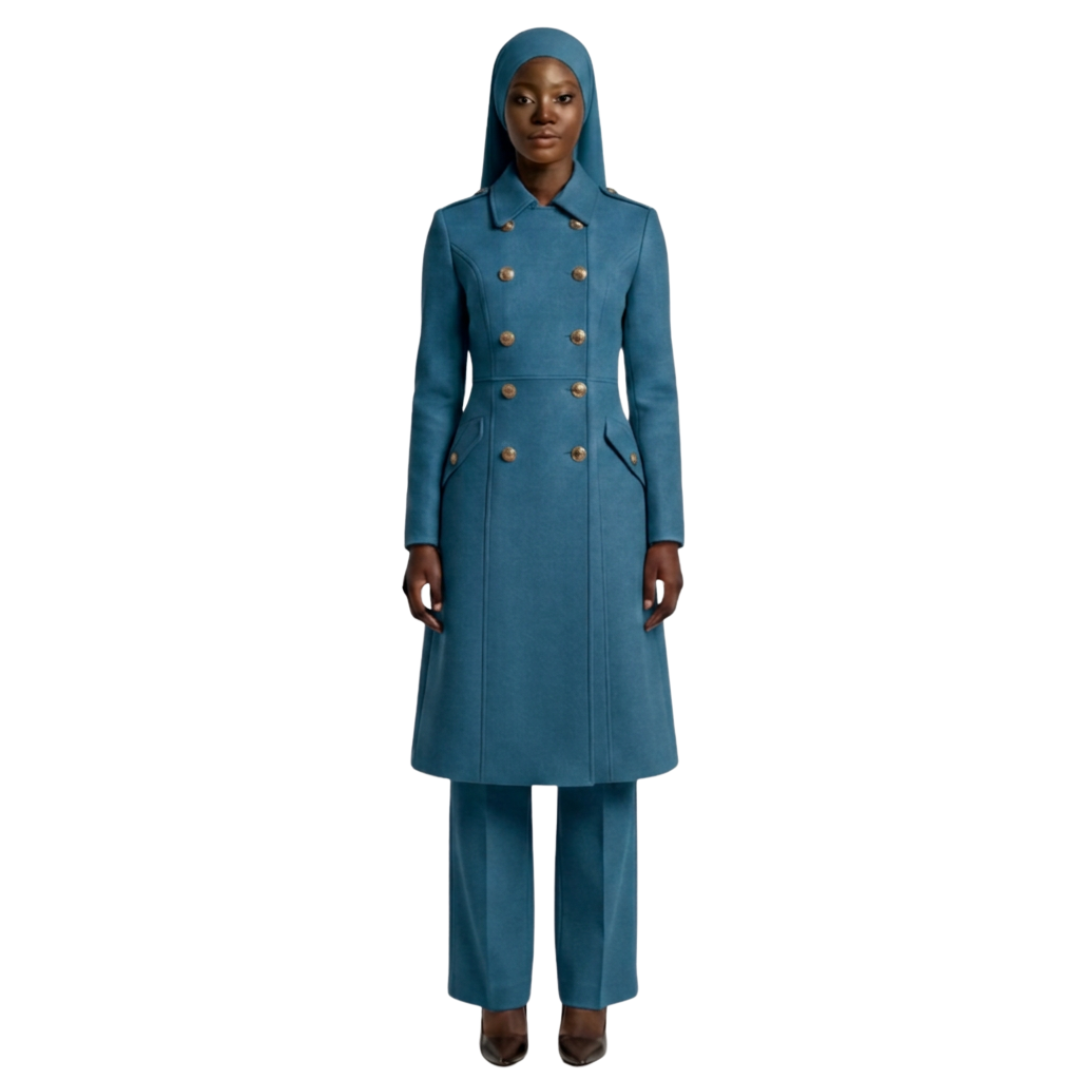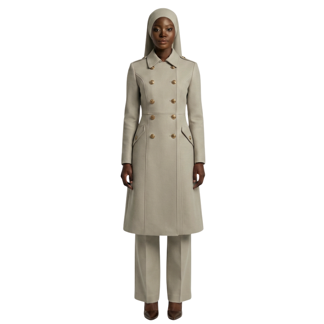 Step into your power and embrace your inner warrior with The Warrior Garment. Designed for Muslim women who value both modesty and strength, this garment combines powerful military-inspired details with modern elegance. Featuring military-style buttons and a structured collar, it commands attention while maintaining modesty, making it the perfect addition to your wardrobe.